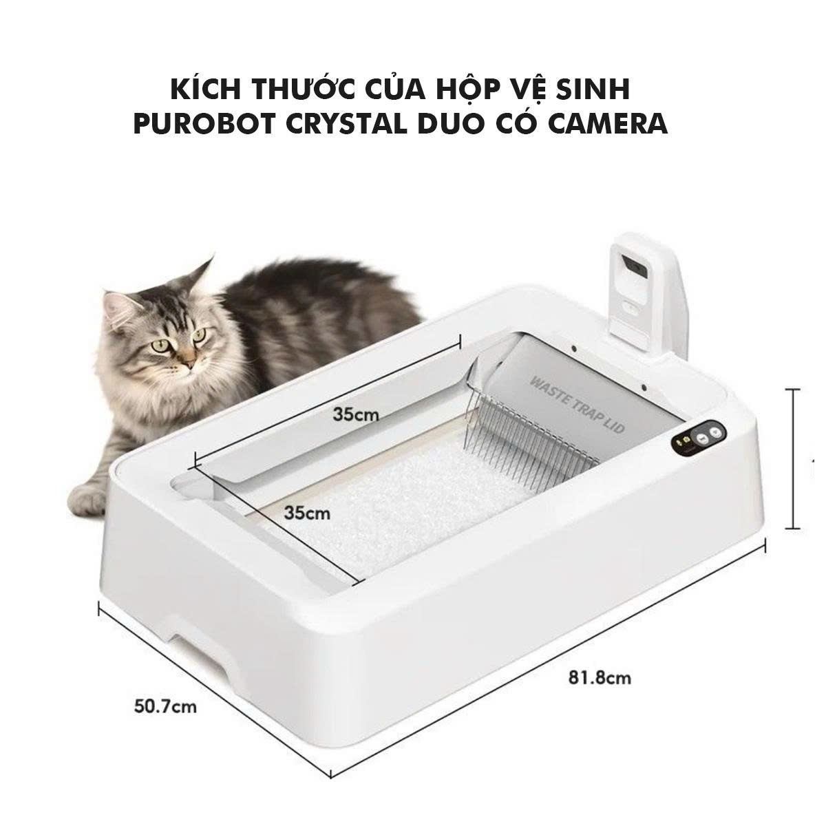 Máy dọn phân Purobot Crystal Duo có Camera AI hỗ trợ theo dõi chất thải, cảnh báo nếu phát hiện bất thường.