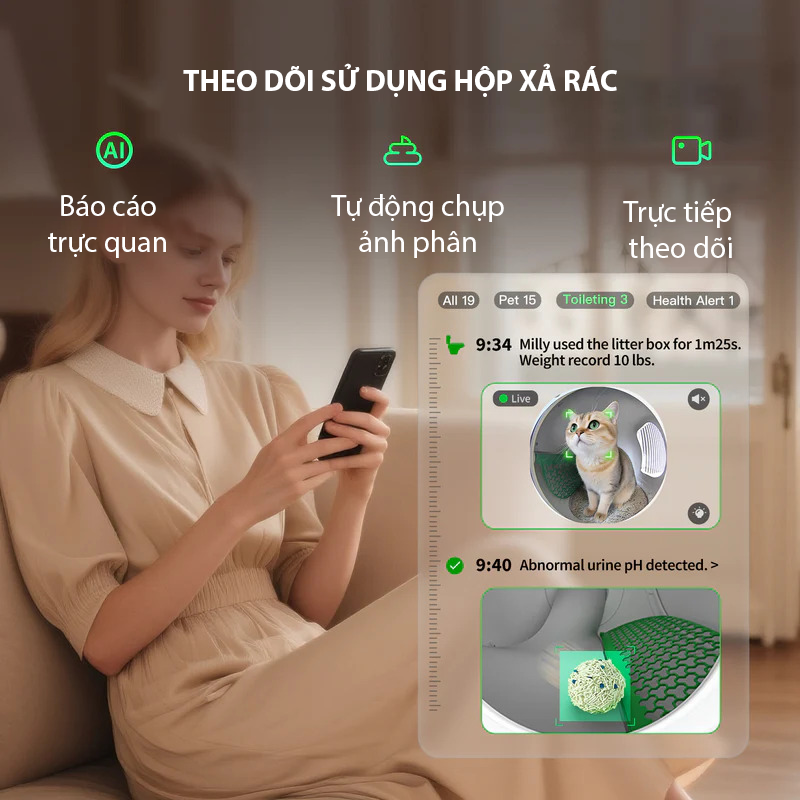 • Các cảm biến trọng lượng tích hợp phân biệt mèo dựa vào cân nặng của chúng, điều này rất hữu ích đối với các gia đình nuôi nhiều mèo.